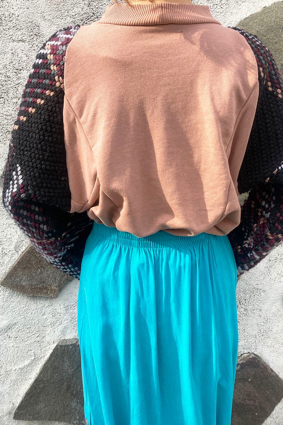 もともとデザイン性のあるスウェットをラグラン位置で切り落として