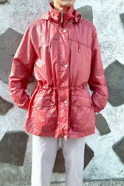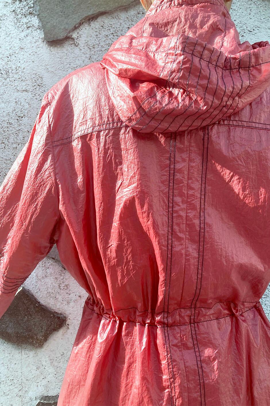 撥水加工(全ての雨を防ぐものではありません)の少しテカリのある素材がレインコートの好きなところ
