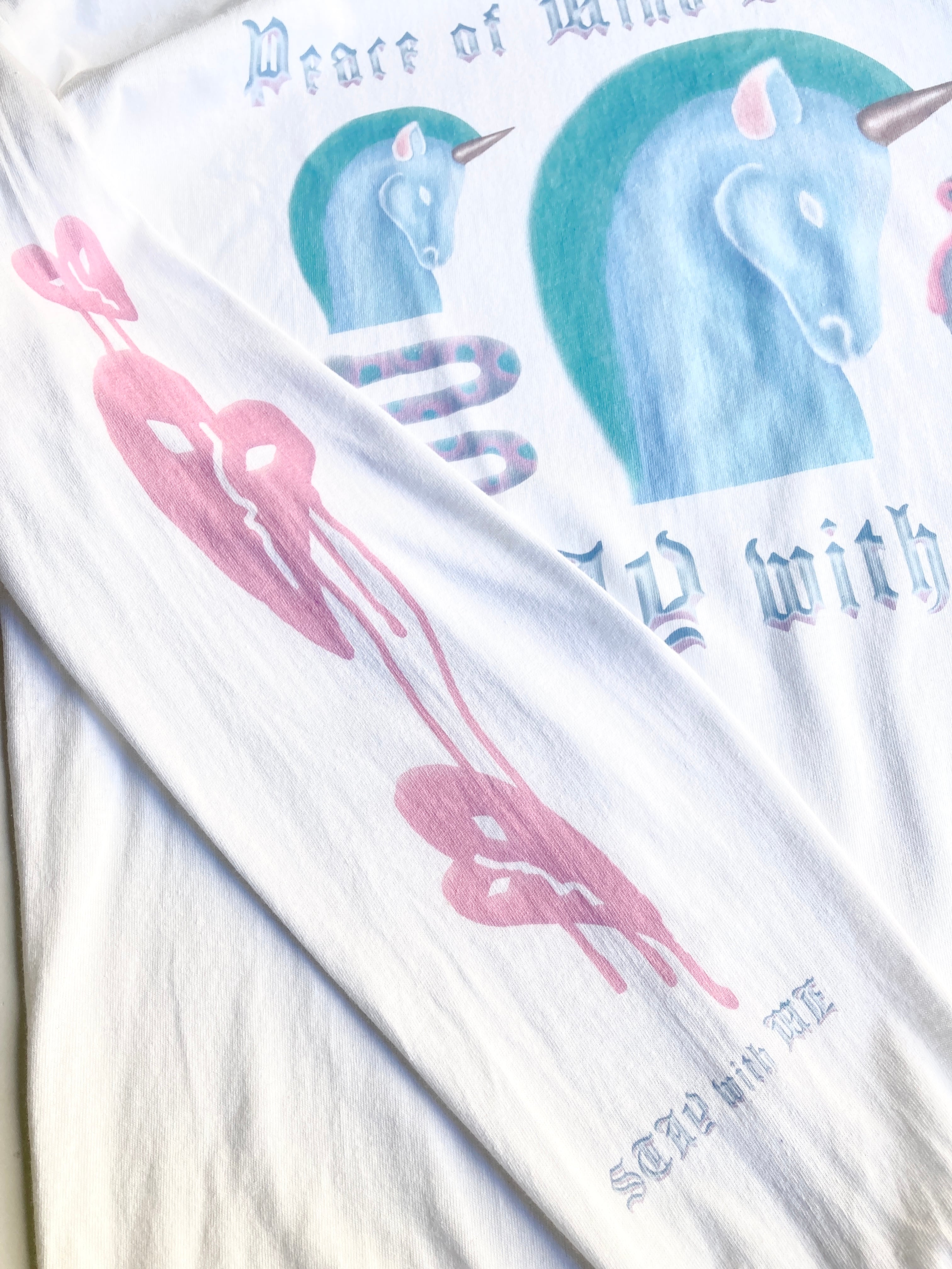 ジョローナ10周年特別展覧会のタイトルにもなった絵 "Peace of mind in hell" を元に製作されたロンtee